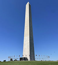 1885 – The newly completed Washington Monument is dedicated. The Washington Monument is a 555-foot tall obelisk on the National Mall in Washington, D.C., built to commemorate George Washington, a Founding Father of the United States and the nation's first president. Standing east of the Reflecting Pool and the Lincoln Memorial, the monument is made of bluestone gneiss for the foundation and of granite for the construction. The outside facing consists of three different kinds of white marble, as the building process was repeatedly interrupted. The monument stands 554 feet 7+11⁄32 inches tall, according to U.S. National Geodetic Survey measurements in 2013 and 2014. It is the third tallest monumental column in the world, trailing only the Juche Tower in Pyongyang, and the San Jacinto Monument in Houston, Texas. It was the world's tallest structure between 1884 and 1889, after which it was overtaken by the Eiffel Tower, in Paris.