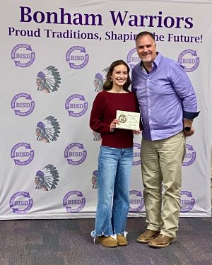 Frazier has been in Bonham schools since fourth grade and participates in band, cross country, track, National Honor Society and UIL academics. Future plans include going to college and studying physics. Teachers describe him as a quiet leader, hardworking students and one who is looked up to by his peers.