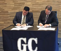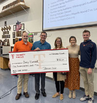 (L-R) Brent Omdahl, Heidi Rushing, President O’Day, Dr. Rahul Renu, Clay Barnett, Kent Sharp, Mayor Teamann, Dr. Beth Gill. The Sherman Economic Development Corporation (SEDCO) has approved a grant of $500,000 to Austin College to support engineering equipment that will be housed in the planned Harris Engineering Center.