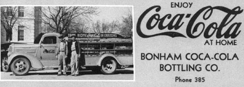 Coca-Cola Archives in Atlanta, Georgia notes that the first gallons of syrup were sent to Bonham in 1919. Ads for bottled soft drinks from the Bonham Coca-Cola plant, including the orange-citrus flavored Orange Squeeze, began appearing in the Bonham Daily Favorite by September 1920. (Coca-Cola no doubt thought it wise to start advertising since Bonham already had Crown Bottling Works, which had been bottling the equally popular Dr. Pepper for several years.)