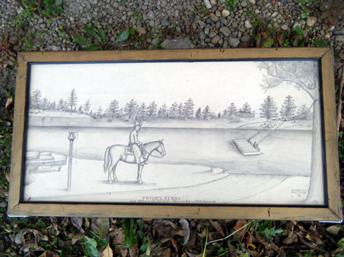 Two additional sketches were also found. One was of another form of transportation, a ferry on Red River. Pryor’s Ferry, more than likely located due north of Ivanhoe, moved many people, wagons, animals and materials across the river.