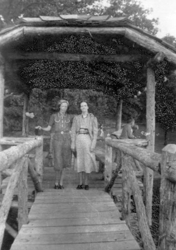 "We never used the Lodge or any of the cabins, only the picnic area, and from there after lunch we followed a narrow path down and across a wooded ravine to the swimming area," Gregory continues. "Elderly non-swimmers sat under the large oak trees between the Bath House and the 'beach.' I avoided a slippery concrete slide into the water, thinking it might go too fast, too deep. During our earliest visits we walked across the long wooden bridge to the east shore of the lake, but usually turned back because even then it was getting into a bad condition with boards missing. Still, it seemed exotic with a series of roofed way-stations along the length of the bridge. I am glad that photos still exist to show this. Because my mother never out-grew her grief over my grandmother's death, Lake Fannin has remained a sacred place."