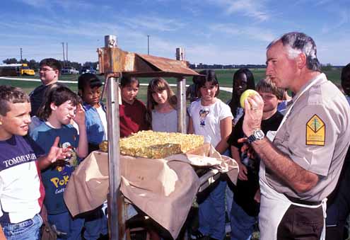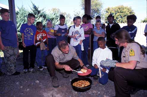 "I developed this event to give visitors an opportunity to try some traditional and more modern Native American style foods. The night before the event, interpreters prepare around a dozen dishes, which allows us to provide programs and give site and museum tours while guests sample the dishes. We also give them the recipes. The visitors do not participate in any of the cooking because the park simply doesn't have the accommodations at this time. However, once the new educational pavilion is completed, we may allow the visitors participate in the actual cooking."