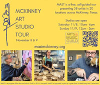 Come see the creative process IN PROGRESS, as artists across McKinney open their studio spaces to the public this weekend!