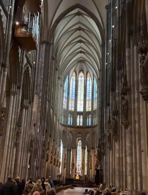 In Cologne, the weather turned very windy, very cold, and had the nerve to spit rain. After a quick self-guided tour of the 13th-century Gothic Cathedral which, though damaged, survived aerial bombings in World War II while the city itself was nearly destroyed, we walked back to the ship alongside the Rhine.