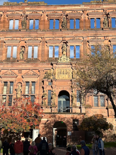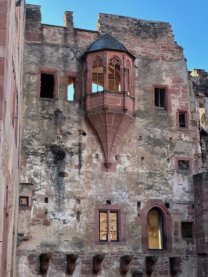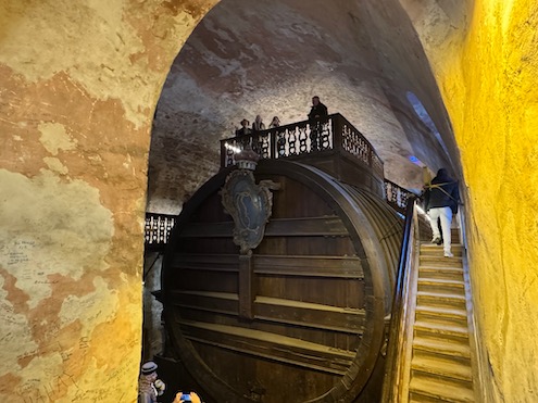 We docked in Ludwigshafen and bussed to Heidelberg for a tour of the Renaissance castle complex and a view of the world’s largest wine barrel, which holds 49,000 gallons of wine! We could walk on the barrel, also known as the Great Vat. The castle itself is considered a ruin, but it’s also quite a tourist stop with a museum store and a funicular to aid getting into Heidelberg itself.
