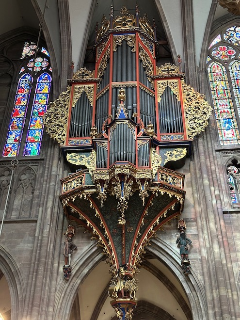 Strasbourg’s cathedral is beautiful, the organ complex amazing. Constructed between the years of 1015 and 1439, it was originally supposed to have two spires. Succeeding architects changed it to an octagonal tower. It was damaged during World War II and finally restored in the early 1990s.