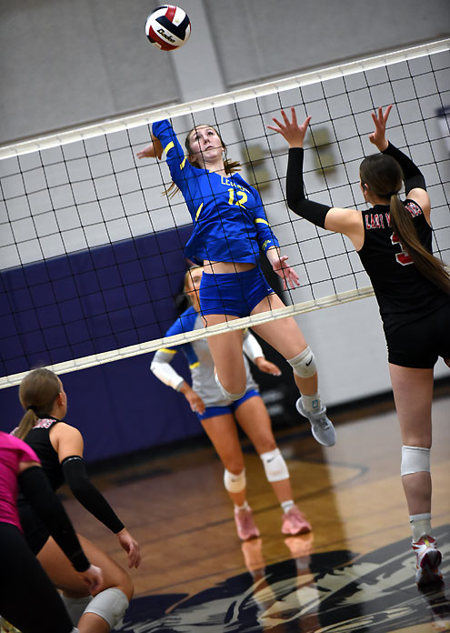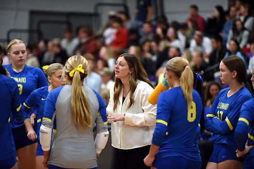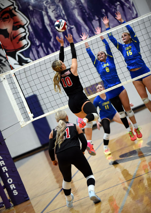 In the first set, Leonard hitters Leah Stoy, Riley Brown and Bella Neaville gave Leonard a 24-20 lead and a block by Neaville put a 25-20 win in the books.