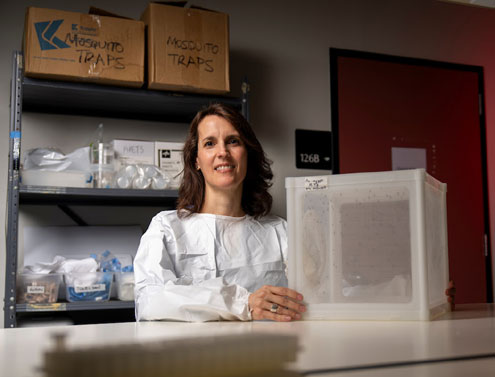 For example, West Nile is an arbovirus endemic to the U.S. that she could easily apply her work to, and ticks are disease-carrying arthropods she may consider studying in the future.