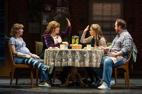 Kimberly Akimbo features scenic design by David Zinn, costume design by Sarah Laux, lighting design by Jeanette Oi-Suk Yew, sound design by Kai Harada, projection design by Lucy MacKinnon, and wig, hair, and make-up design by J. Jared Janas. The production’s Music Supervisor is Chris Fenwick and the Music Director is Leigh Delano. Kimberly Akimbo features orchestrations by Tony Award nominee John Clancy, with additional orchestrations by Macy Schmidt. The Production Supervisor is Arabella Powell, the Production Stage Manager is Shawn Pennington and casting is by The Telsey Office, Craig Burns, CSA.