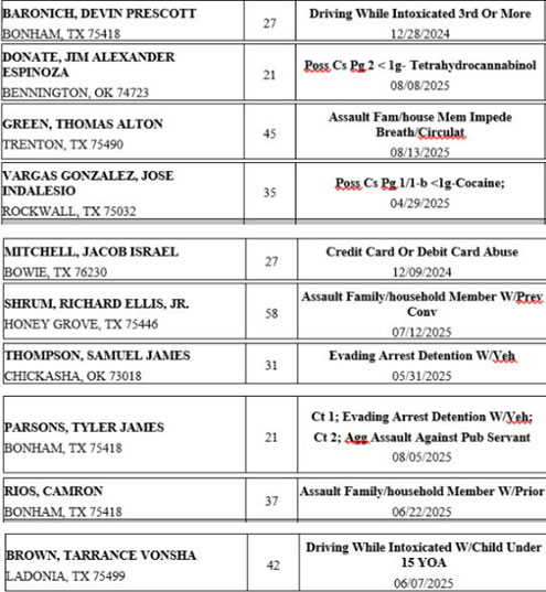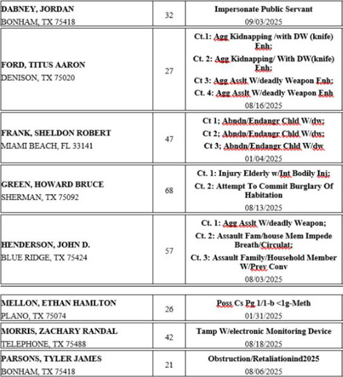 Fannin County, Texas -- Criminal District Attorney John Skotnik reports that the Fannin County Grand Jury returned indictments as shown below.