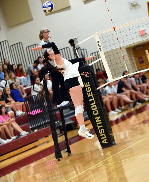 It was a balanced effort for Austin College, with 12 players recording at least one kill while 22 players got into the match. Selah Coleman led the way with six kills and zero attacking errors for a hitting percentage of .667, while Rachel Sadler added five kills in the win. Coleman chipped in seven digs and Sadler had six, as well as a pair of aces. Victoria Larson and Caroline Smith each had four kills, while Laynie Kovacs paced the 'Roos defensively with 15 digs and Madisin Hartsfield had four total blocks, including two solo blocks. Madison Manning led the 'Roos with 14 assists. Kovacs had a team-high three aces in the win.