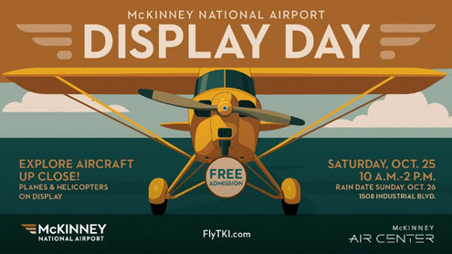“Many residents have not had a reason to visit McKinney National Airport yet,” said Ken Carley, Director of McKinney National Airport. “Display Day is a chance to see the aircraft based here and learn how the airport operates today. In the near future, we hope residents will think of McKinney first when they are ready to fly, as we work toward offering commercial passenger service close to home.”