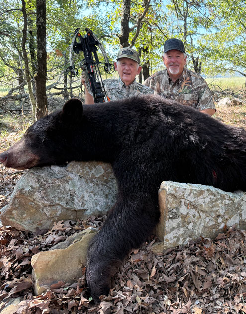 The eastern strain of wild turkey are plentiful in southeast Oklahoma and especially on the land owned by the Choctaw Nation, thanks to insightful wildlife management by Biologist Matt Gamble and his team. The Cotton’s first trip for eastern turkey was back in the spring and while there around the evening campfire visiting with Weishuhn and lodge manager Dusty Vickrey, their interest in a close-to-home bear hunt was perked! Dusty and his wife Nacolh oversee all the activities at the lodge which range from planning company events and weddings to planting food plots and managing the wildlife and hunting.