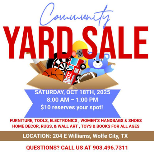 Wolfe City Public Library to host Community Yard Sale Oct. 18