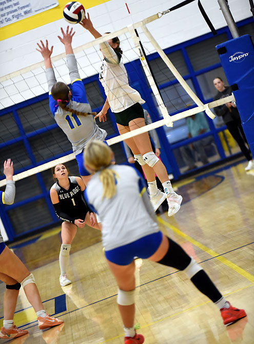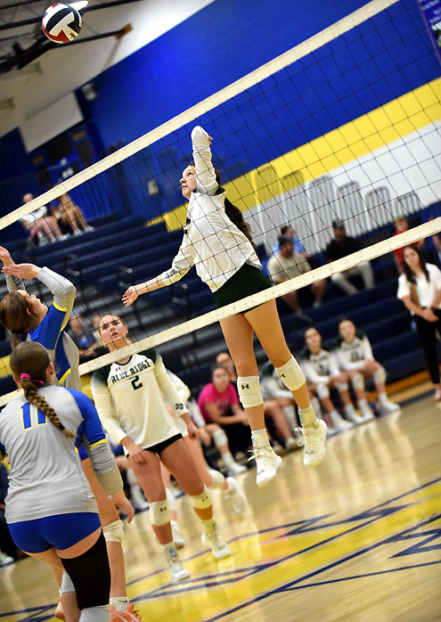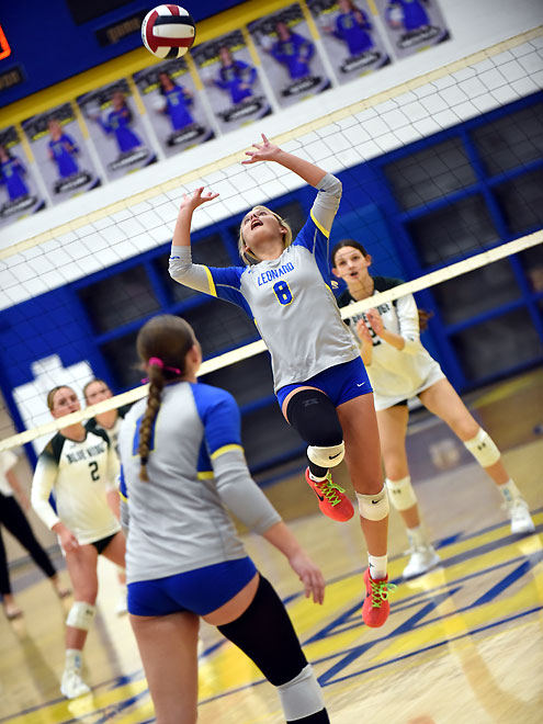 Leonard defended its home court with a 25-21 victory in the opener, but Blue Ridge took the next three sets, 25-23, 25-19 and 25-23 to win the match.