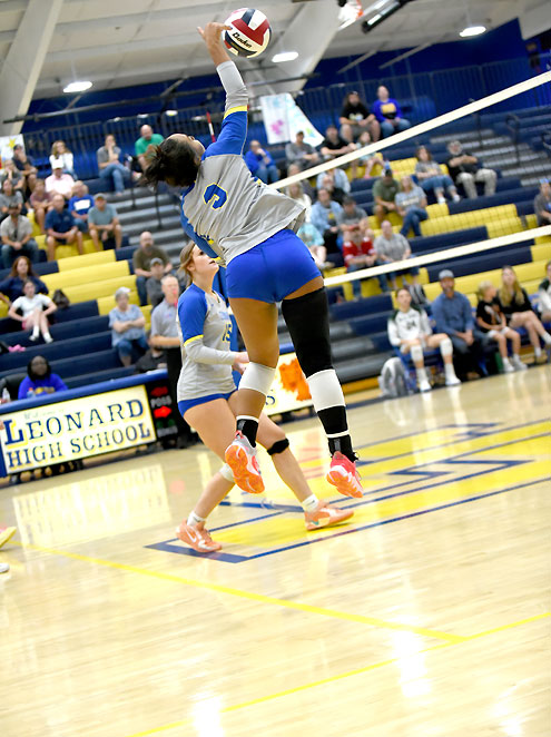 Leonard, Texas -- The Blue Ridge Lady Tigers took sole possession of second place in District 11-3A with a four-set win over the Leonard Lady Tigers. Both teams came into the contest with 6-3 district records.
