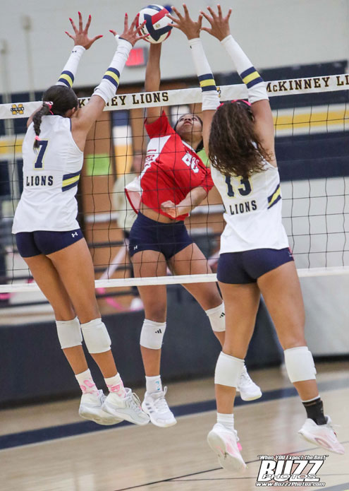 McKinney, Texas -- The McKinney Boyd Lady Broncos and the McKinney Lionettes split the first two sets, with the Lady Broncos taking the opener, 25-21, and the Lionettes coming out on top, 25-19 in the second set.