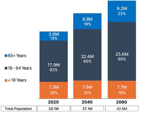 Texas Projected Population by Age, 2020-2060