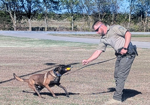 “He stays with me 24/7,” Deputy Doty stated. “He lives on my ten acres, with plenty of space to run and practice his training exercises.”