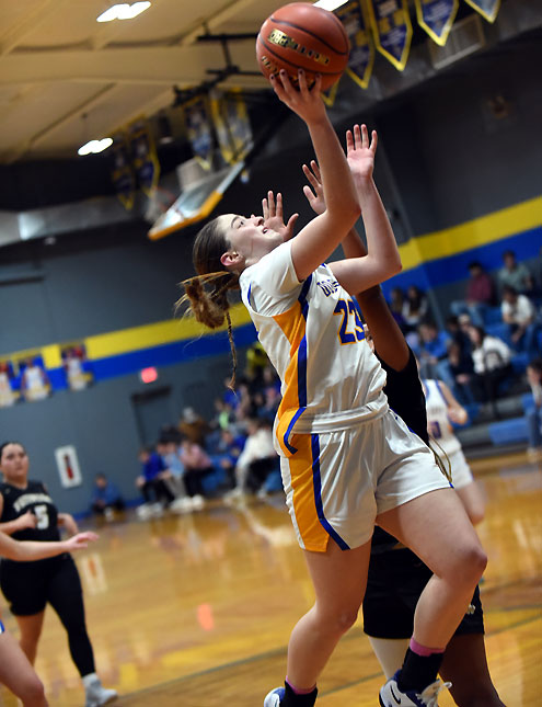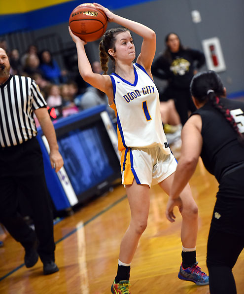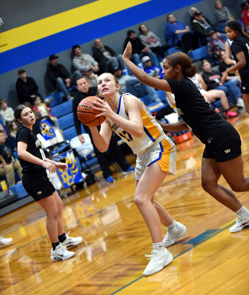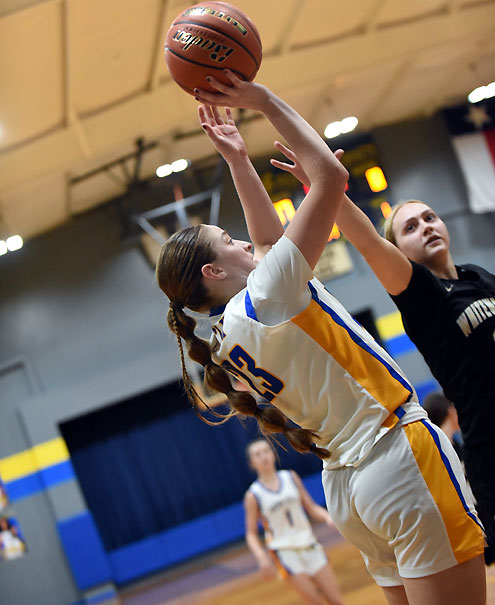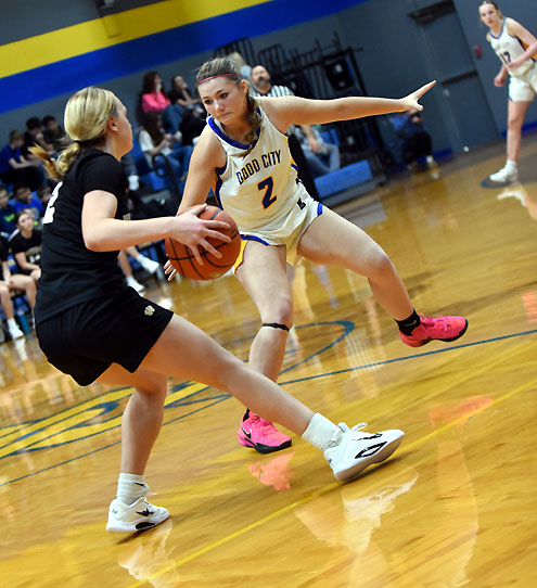 Dodd City clamped down on defense to shut out Whitewright in the first quarter and take a 7-0 lead into the second frame. The Lady Hornets were up 14-6 at the half.