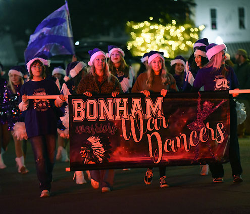 Bonham Chamber Executive Director Sam Lumpkins ensures that parade entries are properly spaced.