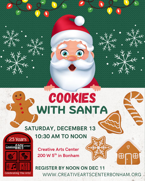 Cookies with Santa at Creative Arts Center Dec. 13
