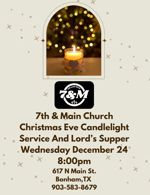 7th & Main Church Christmas Eve Candlelight Service and Lord's Supper Dec. 24