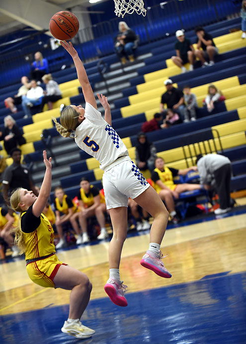 Leonard's Riley Brown worked inside for three baskets and knocked down a pair of free throws for a total of eight points in a busy second quarter. Kylie Houser sliced through the lane for a lay-up, Avery Ross hit a free throw and suddenly it was Leonard with a 17-16 lead at the half.