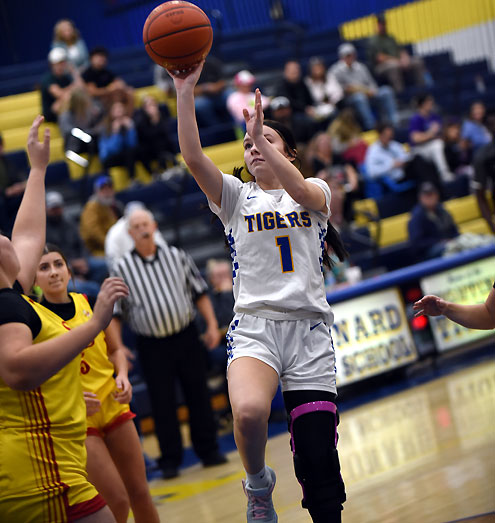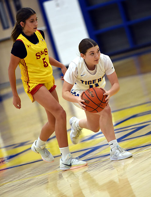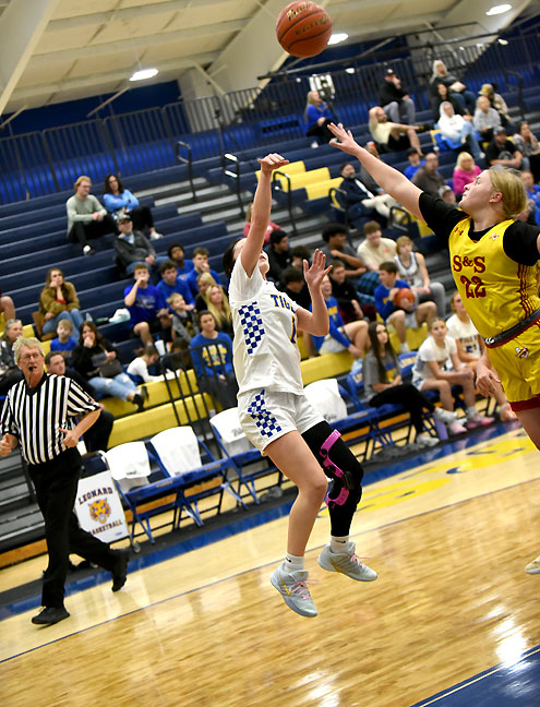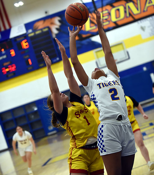 S&S proved they came to play by jumping out to an 8-0 lead before Leonard's Emma Houser hit a three-point shot to get the Lady Tigers on the scoreboard. Sarah Garvey netted a free throw and Bella Neaville banked in two points, but S&S had a 16-6 advantage as the first quarter ended.