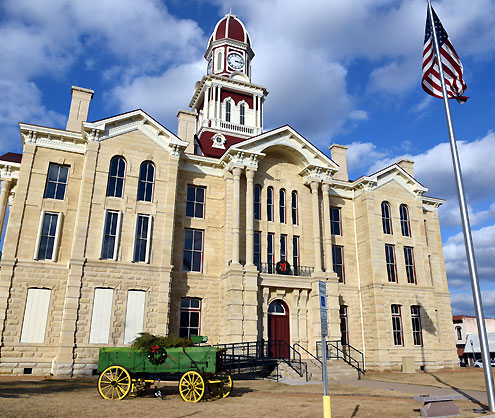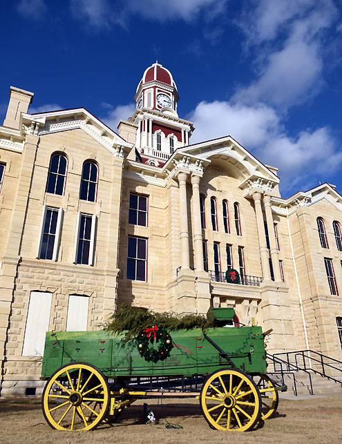 Fannin County, Texas -- Fannin County employees and residents would like to thank David and Janie Herrington for displaying their wagon on the courthouse lawn.