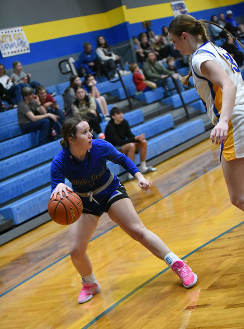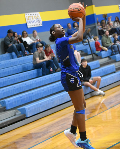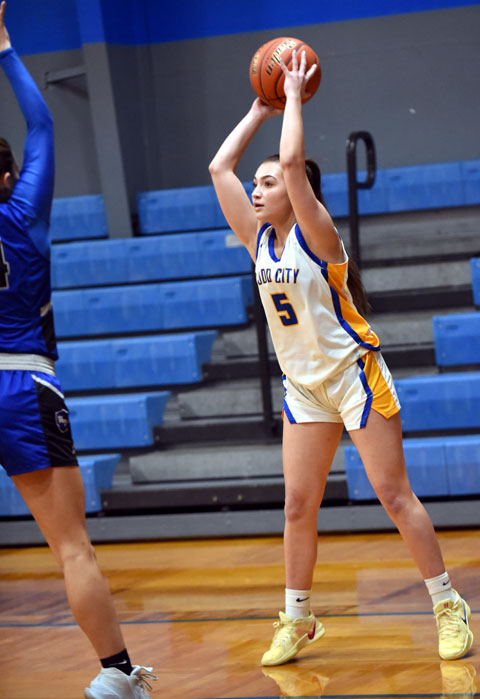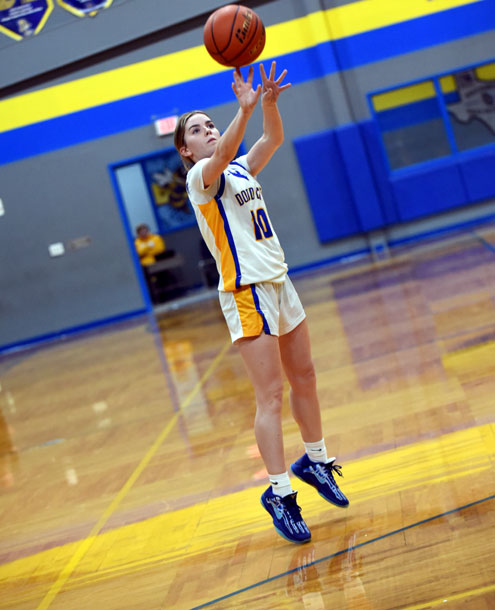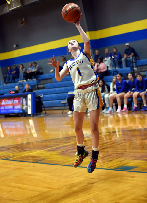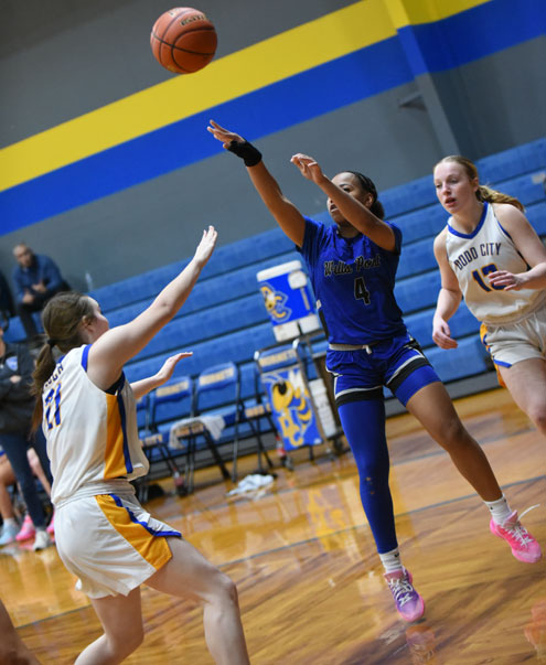 Wills Point put up the first two points before Dodd City freshman Kodi Dorau hit back-to-back baskets to give the Lady Hornets a 4-2 lead. Wills Point pulled even at 4-4, but Dodd City's high-scoring senior, Addison Weeks, netted a pair of free throws to ignite a 6-0 run. Weeks fired a pass inside to Dorau for two points and Gracyn Shindler scored on a breakaway to give Dodd City a 10-4 lead at the first buzzer.