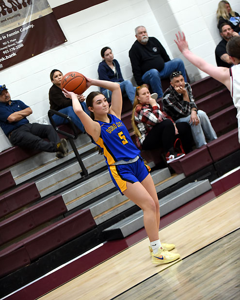 The Lady Hornets went on a 16-0 run in the first quarter. Dodd City's Kodi Dorau got the scoring started with a basket in the paint. Gracyn Shindler dropped in a lay-up and then hit a baseline jump shot. Addison Weeks put up the next 10 points with a pair of lay-ups and two three-point shots.