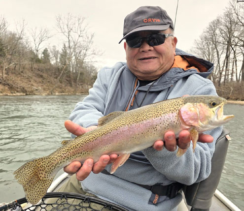 Hardy, Arkansas -- Brandon Suga started off the new year by catching this nice rainbow trout on the Spring River while fishing with guide Mark Crawford.