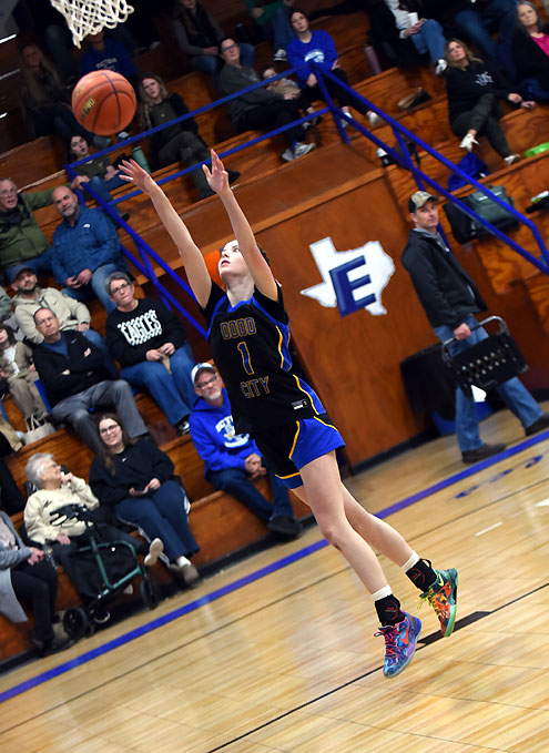 Ector scored the first basket of the game, but Dodd City reeled off a 19-0 run to take control. The Lady Hornets had a 25-4 lead after the first quarter and Dodd City took a 40-8 advantage into the locker room at halftime.