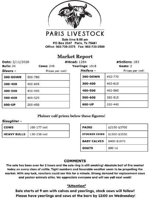 By Paris Livestock Commission in Paris, Texas