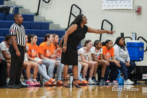 Coach Veronica Hamilton-Reed directs her Lady Bulldogs (18-13) to a great victory over Texas High School (21-3) from Texarkana, Tx in the Bi-District Playoff at Paris High School, Paris, Texas on February 16th, 2026. Texas High started the game with a full court press that caught McKinney North off guard. The Lady Dawgs came back and took the lead late in the first half. The lead went back and forth until the end. The Dawgs were down by 2 points when Freshman Jada Square (#13) tossed in a 3 pointer to take the lead and the game.
