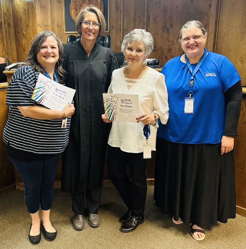 Two new volunteers joined the CASA team. Judge Blake swore them in on September 27, 2025.