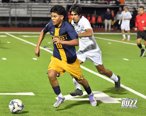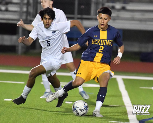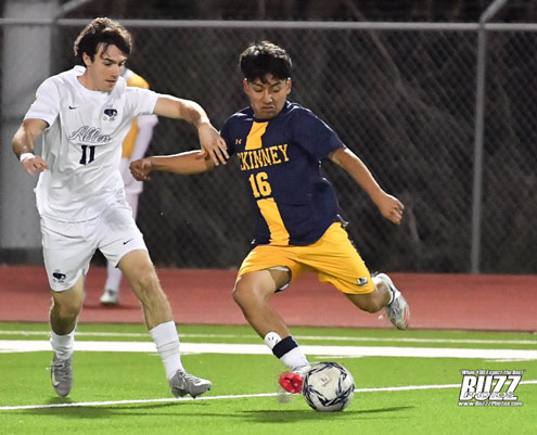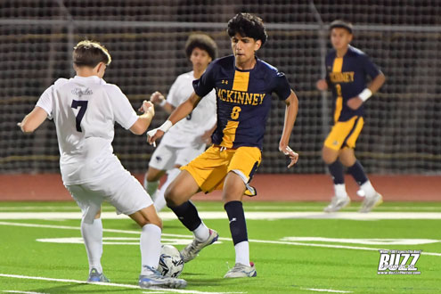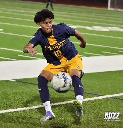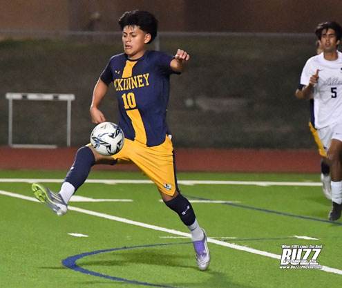 McKinney Lion Saulo Moreno (10) with a midfield kick.