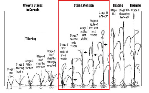 Wheat: Most of our wheat is approaching boot stage with 28° F being the threshold for damage. Heads can be sterilized and damaged severely affecting yield. Damaged heads will become stuck in the leaf sheath or emerge deformed or bleached. I have seen several varieties that are maturing ahead of normal due to the warm winter. Assessment of losses across a field will be more difficult due to the dry conditions at planting and uneven stands.
