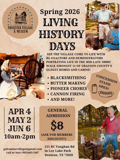 Denison, Texas -- Step back in time this spring at Frontier Village & Museum’s Living History Days!