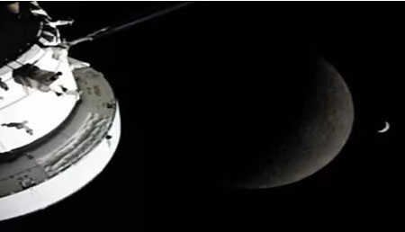 When they fly past the Moon later, crew will come within about 4,070 miles from its surface at the closest approach. The astronauts will be the first to see the far side of the Moon with human eyes and are the first to travel behind the Moon. Finally, they will witness a solar eclipse as the Moon passes in front of the Sun.