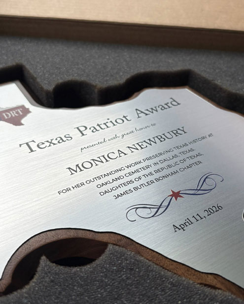 Fifteen years ago, the Alamo Missions Chapter of the Daughters of the Republic of Texas started the tradition of awarding those who have gone above and beyond in preserving Texas history with the Texas Patriot Award. The James Butler Bonham chapter, in their 95th year of existence, decided to start honoring Texans in North Texas with this prestigious award as well.
