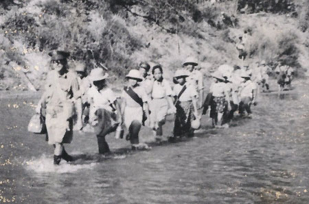 The group walked from about May 6, 1942, to May 15, 1942, going over rivers, streams, and mountains to get to India.