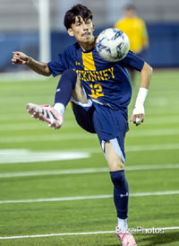 Lions senior forward (#12) Logan Esposio flies thru the air against Rock Hill in a hard fought match at McKinney High School on March 13, 2026. (photo by Buzz Cory/BuzzPhotos.com)
