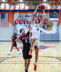 Bulldogs 6'6" senior Preston Spolar (#34) takes off for a dunk against the Lovejoy Leopards. (photo by Buzz Cory/BuzzPhotos.com)
