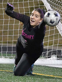 McKinney Lion's women's soccer goalkeeper with the save during the shootout. (photo by Lockard Koval/Buzz Photos.com)
