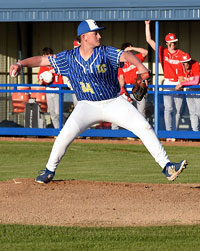 Dodd City shortstop Gavin Shindler went 3-for-5, scored three runs and came on in relief in the top of the fifth to notch the win.
