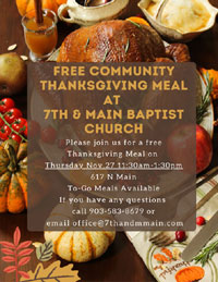 5:30 p.m. until 7:30 p.m. Saturday, October 25 at Northside Church of Christ, located at 2020 N. Center St. in Bonham, Texas 75418.