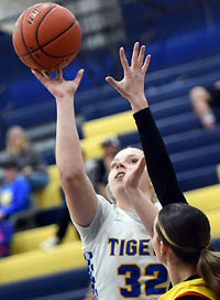 Dodd City junior Kayleigh McBrayer came out with the hot hand and knocked down nine points in the first quarter. (file photo)